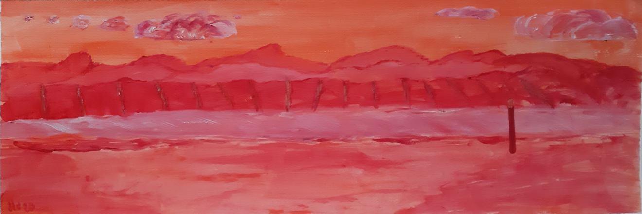 Duinen in het rood Acryl verf op acryl karton (25x70)