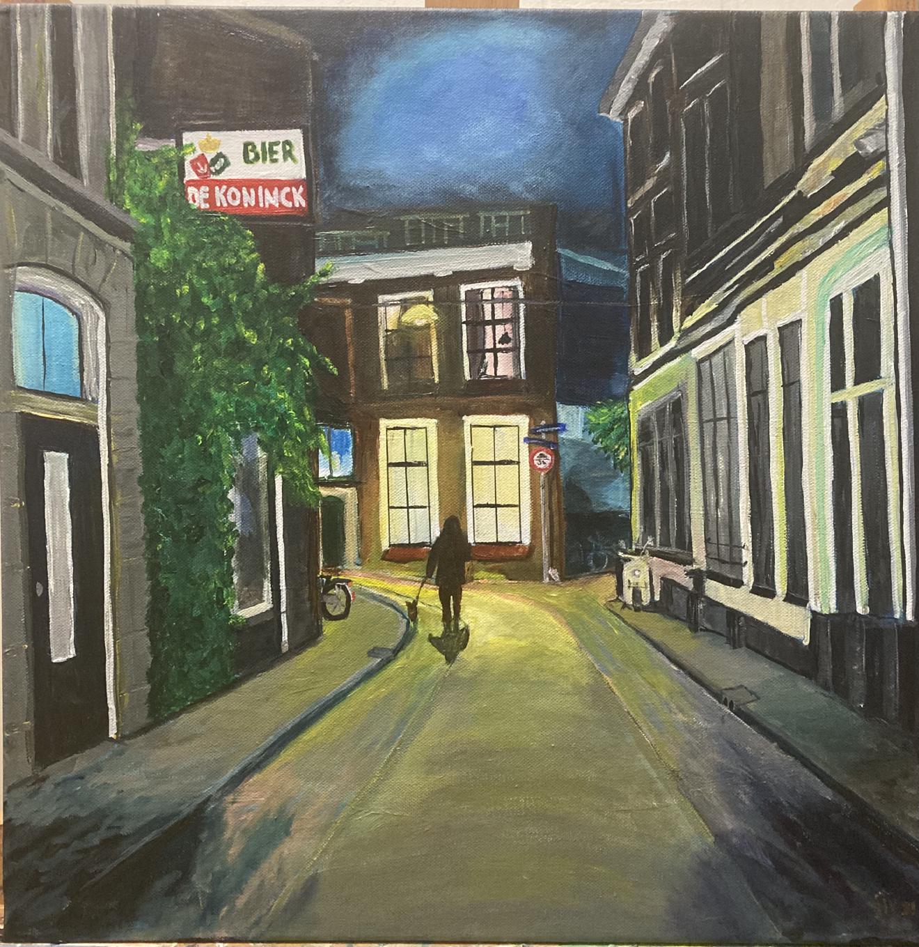 Grote Kromme Elleboog (Dogout Lockdown 1) Acrylverf op doek (49.5x49.5)